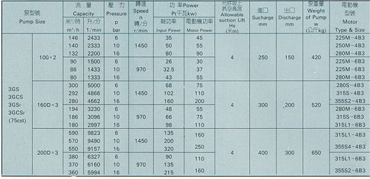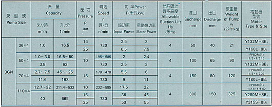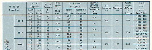 三螺桿泵所輸液體為各種不含固體顆粒,無腐蝕性油類及類似油的潤滑性液體,3gr三螺桿泵、36X6A-W21所輸液體粘度為1.2-100E(3.0-760cst),高粘度液體亦可通過加溫降粘后輸送.